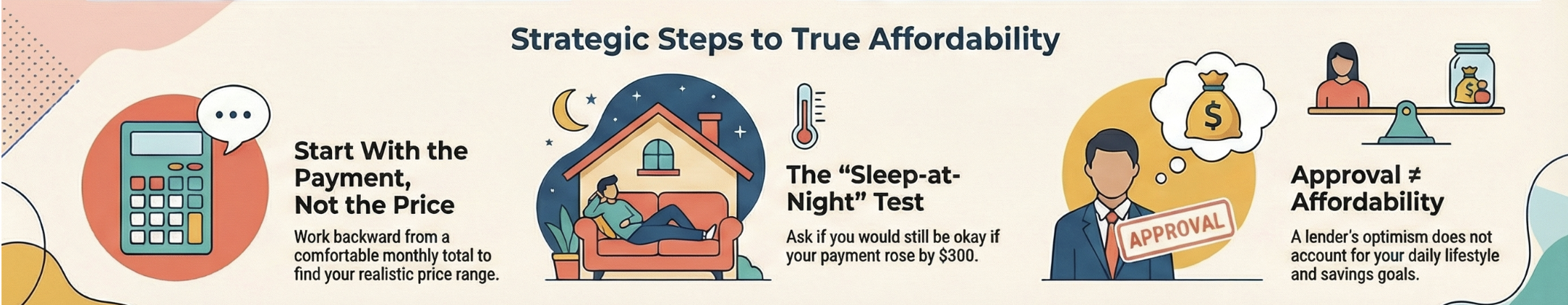 Get pre-approved, set a payment target, then we shop neighborhoods that match your lifestyle—not just your lender’s optimism.